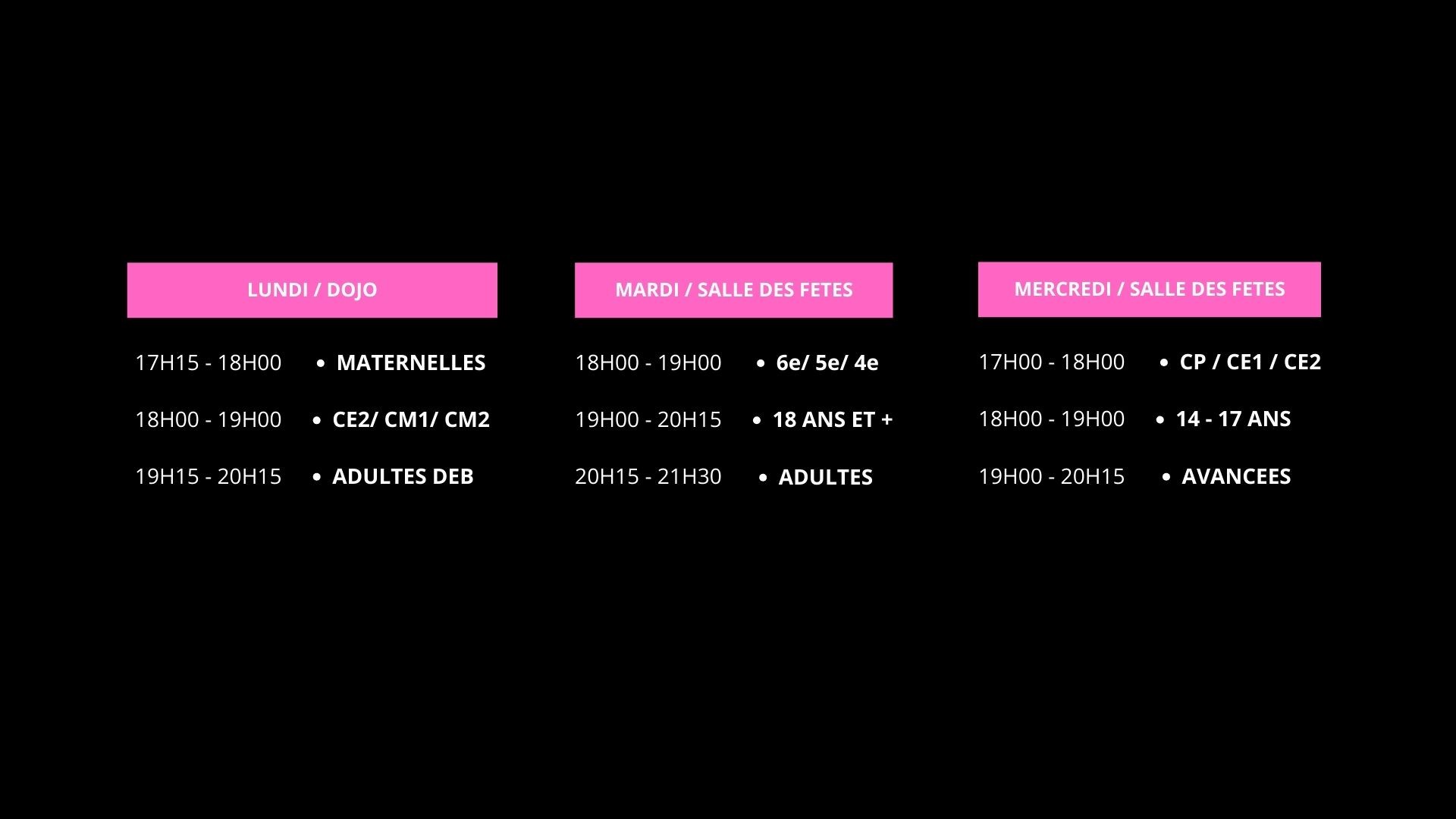 Découvrez notre planning